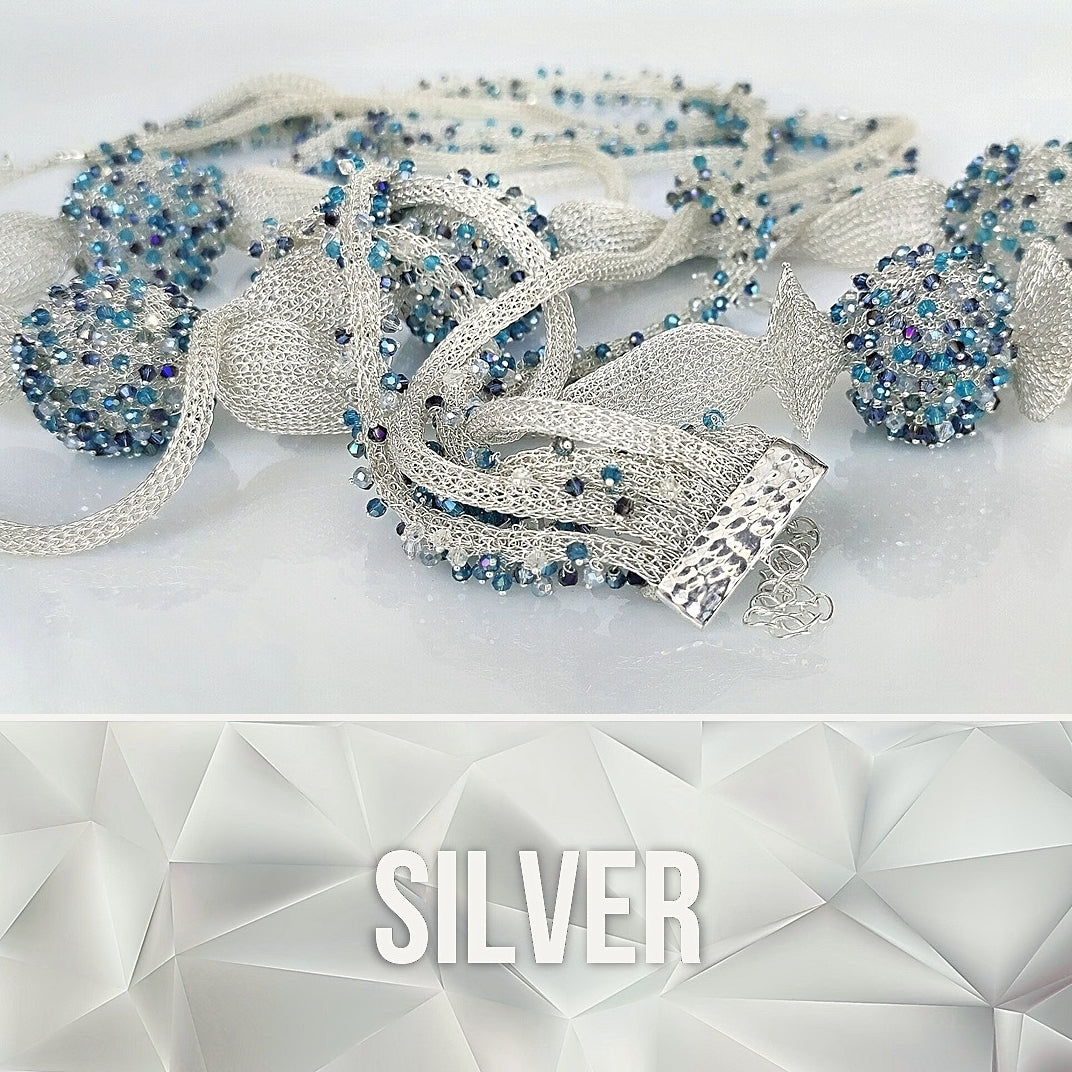 Our silver metal is dipped twice to create a pure white look and a mystical vision. The shimmering illusion of wire is a mirror to your soul surrounded by feminine energy. With its connection to the moon, this versatile metal stays the center of attention.