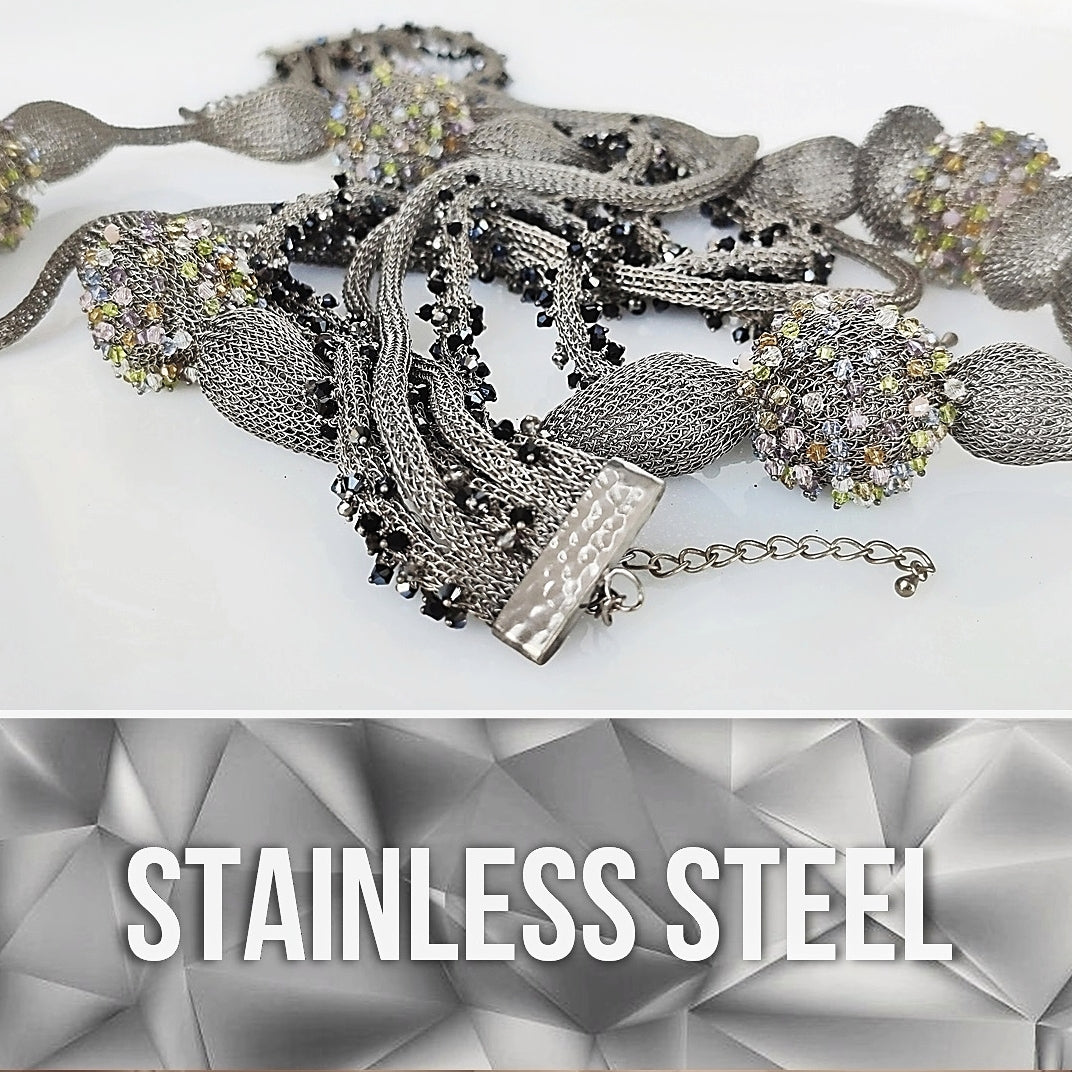 The duplex structure of our stainless-steel metal makes it desirable on all levels. With 100% pure base elements, our stainless steel will never oxidize with its attractive surface maintaining its graceful elegance always. Woven with a high attention to detail, our stainless-steel jewelry parallels luxury like any other metal.
